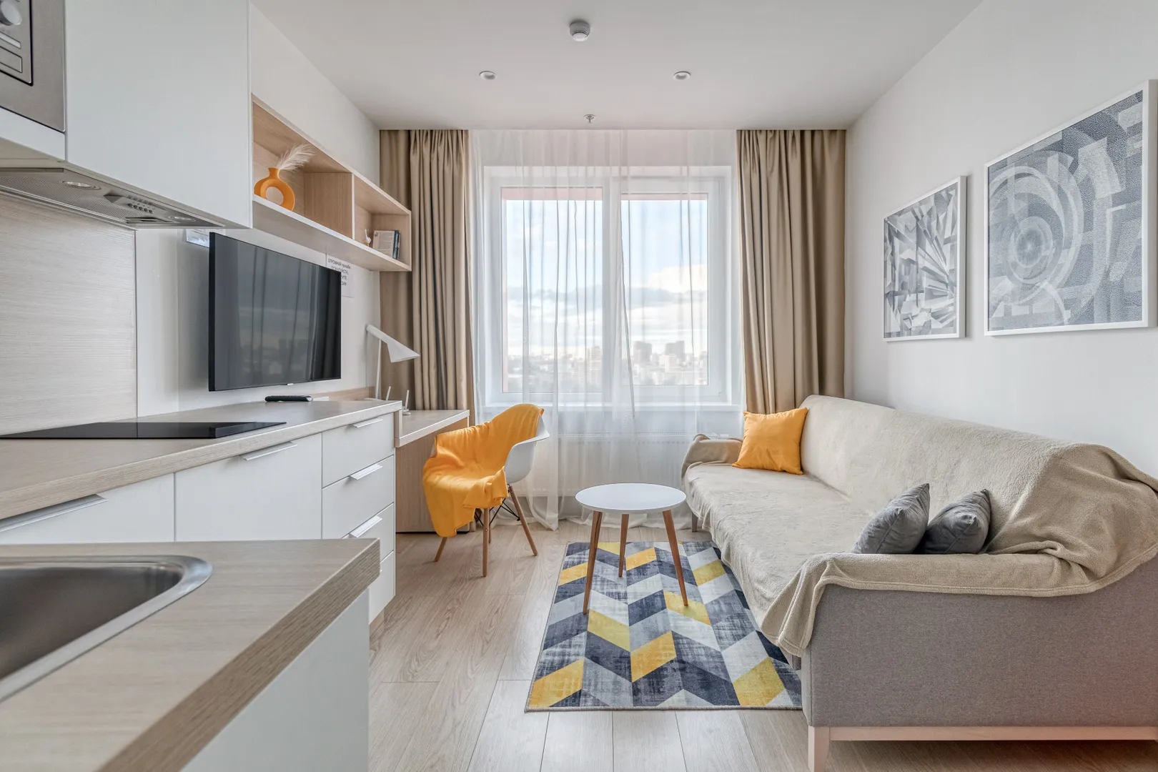 Апартаменты с дизайнерским ремонтом в современном Апарт-отеле в YES Технопарк, в шаге от станции «Технопарк» Замоскворецкой линии метро. Апарт-отель YE’S располагает собственной инфраструктурой: не выходя из апарт-отеля вы можете посетить фитнес-центр с бассейном, ресторан и кафе. Из окна открывается отличный вид на город. Апарт-отель YE’S Технопарк расположен в современном динамично развивающемся районе. Деловой комплекс Nagatino i-Land располагается в пяти минутах пешком от апарт-отеля. Бизнес-парк является вторым по величине объектом московского рынка офисной недвижимости после делового центра «Москва-Сити». В Nagatino i-Land открыты офисы ведущих российских и международных компаний, многочисленные рестораны, кафе, фитнес-центры. Парк развлечений «Остров мечты» открыт через дорогу от апарт-отеля YE’S Технопарк. Под стеклянным куполом всесезонного городского курорта расположены тематические зоны с различными аттракционами, кинокомплекс, цирк, рестораны и кафе, магазины и бутики. Апартаменты с дизайнерским ремонтом с использованием дорогих отделочных материалов, мебели и техники. Большой диван, который раскладывается в двуспальную кровать.