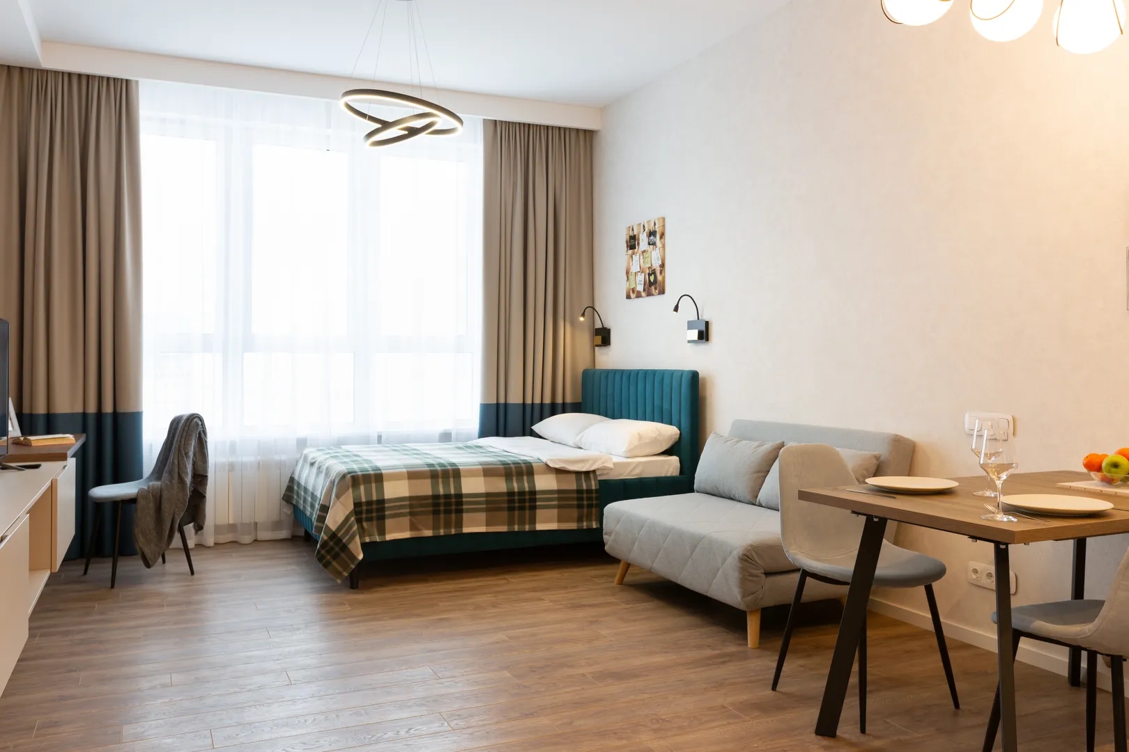 Наши уютные апартаменты отличаются удобством и функциональностью всего пространства. Они находятся недалеко от станции метро Шелепиха и в шаговой доступности от Москва Сити . В них с комфортом могут разместиться до трех человек. Большие панорамные окна и отделка из натуральных материалов отражает концепцию всего дома в стиле лофт.