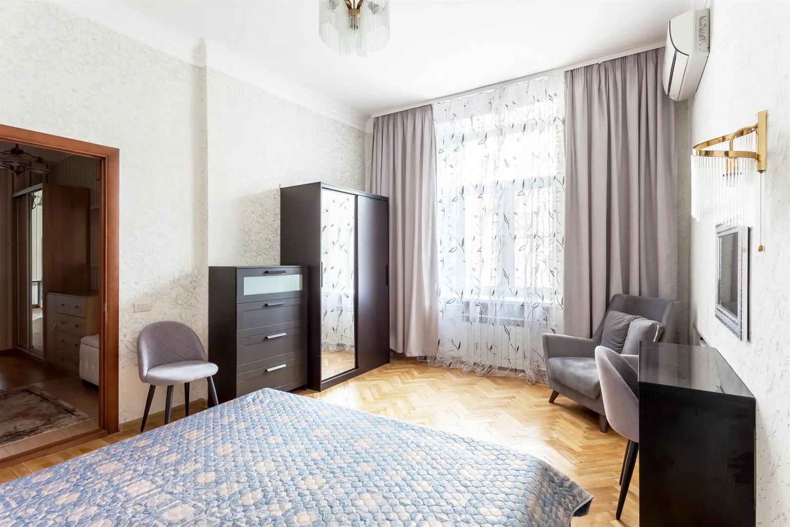 Размещение гостей от 21 года. Опрятная и светлая квартира категории «Бизнес, большая трехкомнатная квартира 85 кв.м. в 5 минутах от метро Киевская и Смоленская. Рядом с Radisson Collection Hotel, Новым Арбатом и Москва – Сити. Рассчитана на размещение 4 взрослых гостей и 2х детей до 12 лет. В квартире расположены 2 двухспальный кровать + доп. места на раскладушках. Оборудованная кухня: варочная панель, чайник, микроволновая печь и кухонные принадлежности. Чистая и ухоженная ванная комната с большой ванной. Стиральная машина, гладильная доска, утюг, фен. Проведен скоростной безлимитный wi-fi интернет, телевизор Предоставляются комплекты постельного белья и полотенец на всех гостей, так же шампуни, гель для душа и тапочки. На новогодний праздники сдается минимум на 2 суток. Депозит на это время удвоенный. При заселении взимается депозит в размере 3000 руб., который возвращается при выезде, если все условия договора гостями соблюдены