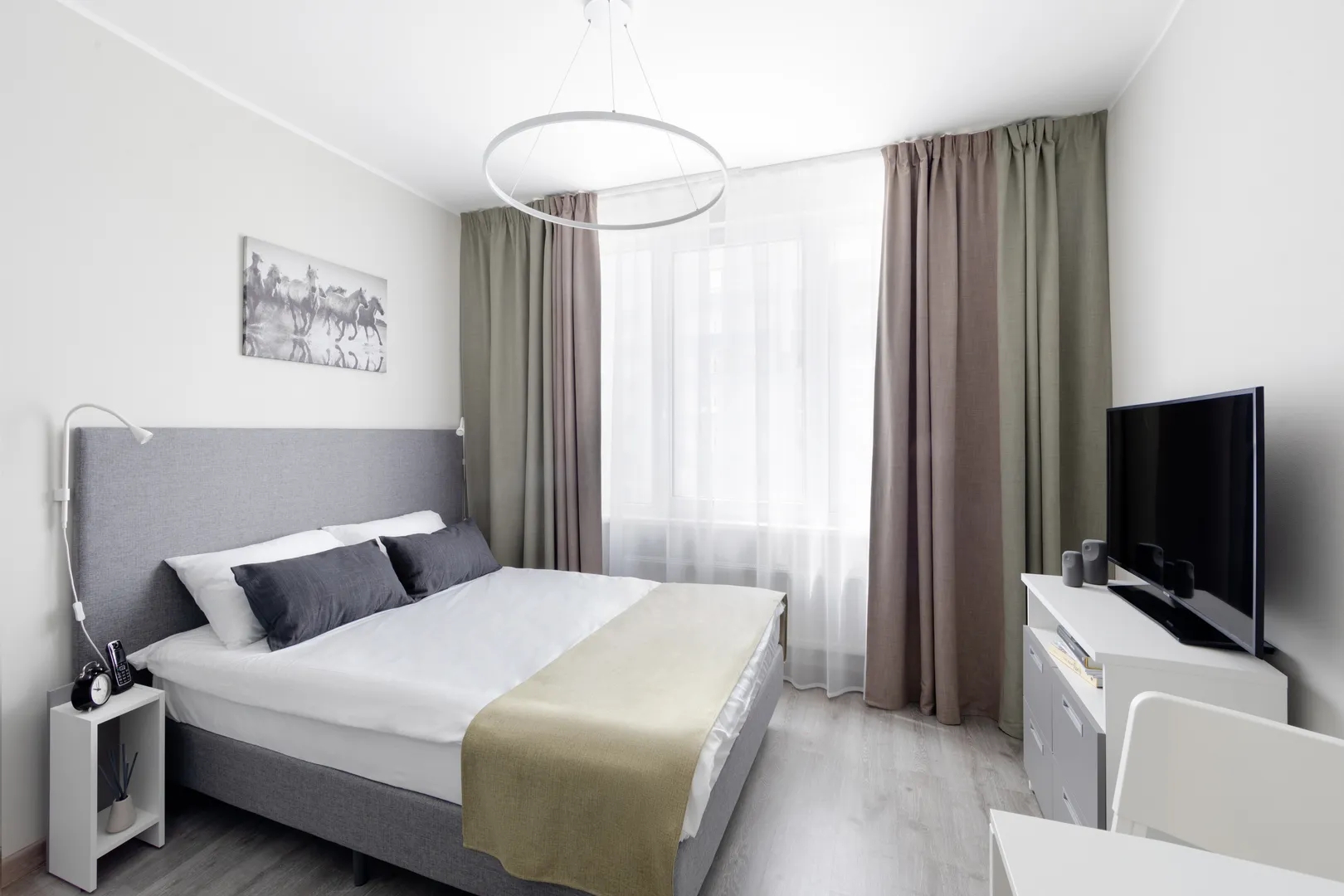 Компактный двухместный номер для бережливых путешественников. В номере полностью оборудованная кухня со всеми принадлежностями: холодильник, индукционная варочная панель, микроволновая печь, кухонная утварь, посуда, приборы, бокалы для вина) Ванная комната оснащена душем, полотенцами, халатами гигиеническими принадлежностями и отельной парфюмерией. Апарт-отель предоставляет качественный отельный сервис: Услуги консъержа 24ч Рум сервис Ежедневная профессиональная уборка номеров Заказ трансферов, экскурсий, билетов, цветов, бронирование столиков в ресторанах Услуги прачечной и химчистки Бизнес-центр (факсимильные услуги и печать) Услуги проведения бизнес - мероприятий Услуга "Звонок-будильник"
