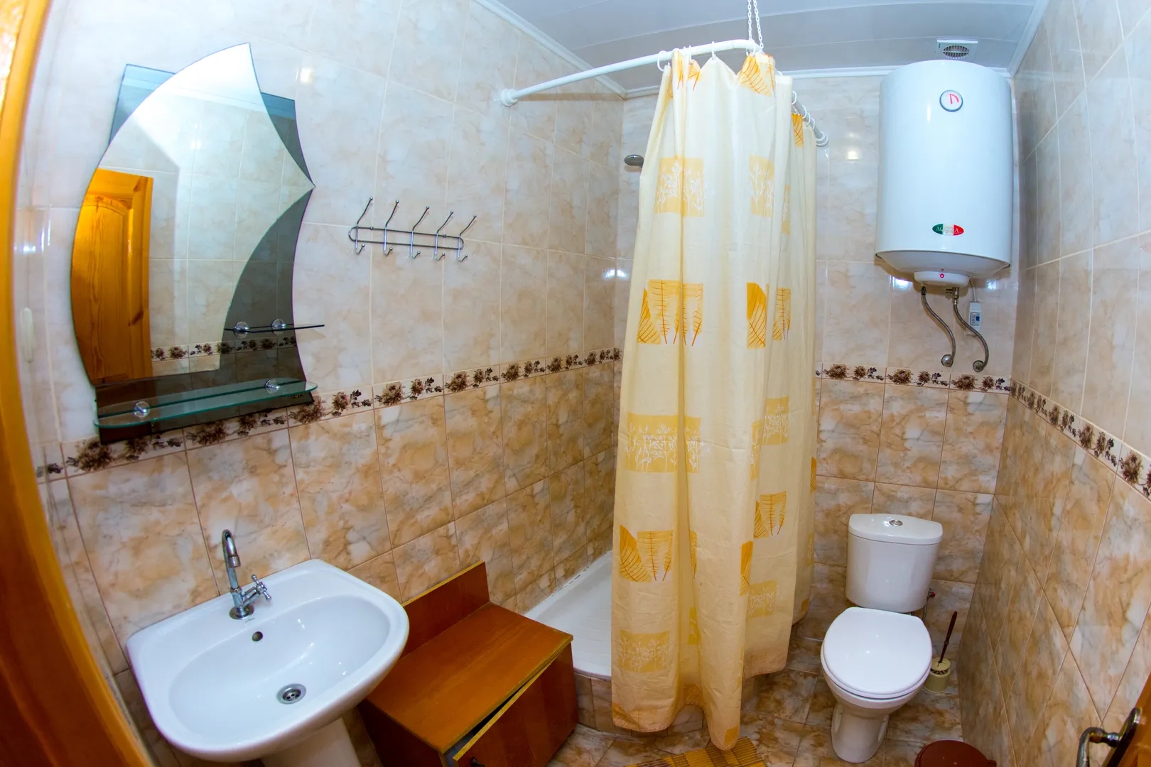 Просторный номер в коттедже на втором этаже(22 м2) с балконом и видом на море и горы. В номере: спальный гарнитур с двуспальной кроватью, двуспальный диван, плазменный телевизор (кабельное), кондиционер, холодильник; санузел (туалет, умывальник, душевая кабинка, набор полотенец, бойлер). Холодная и горячая вода круглосуточно. Кухня на 2 номера, беседка. Основных мест 3-4.