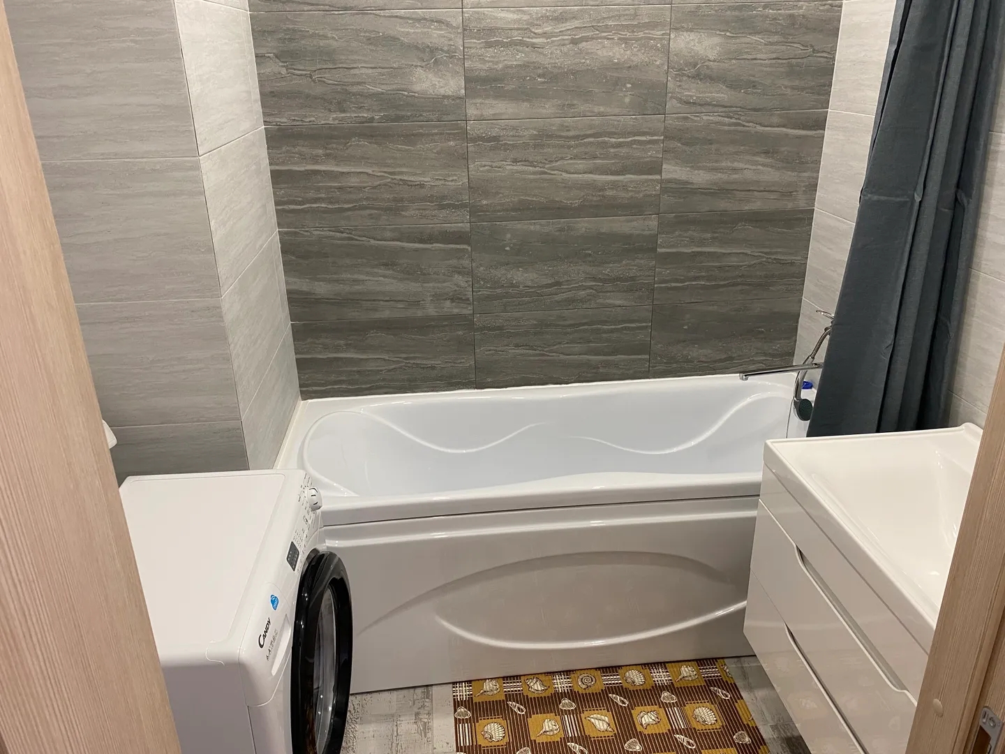3-к квартира с новым ремонтом. Эргономичная квартира в урбанистическом стиле. Для большой семьи, желающей жить с комфортом. Для двух семей и компаний друзей, приехавших на отдых. Отлично подойдет в качестве корпоративной квартиры для топ персонала. Кухня — практичная и функциональная. Идеально вписывается в антураж помещения, где есть обеденная зона и место для сна и отдыха на стильном диване. В квартире достаточно воздуха, так как есть балкон. Кухня полностью оборудована и оснащена бытовой техникой. Есть большой холодильник, СВЧ печь, чайник, посуда для приготовления пищи. Санузел включает ванну классической модели с душем, раковину для умывания, стиральную машину, фен. Если вы приедете с детьми — на придомовой территории имеется современная, красочная детская площадка. Квартира расположена в районе Октябрьский. Это молодой, комфортабельный район с развитой инфраструктурой. Из дополнительного сервиса: уборка, заезд/выезд в удобное время. Предоставляем все необходимые документы. Обсудим скидку, если вы пожелаете заселиться надолго.