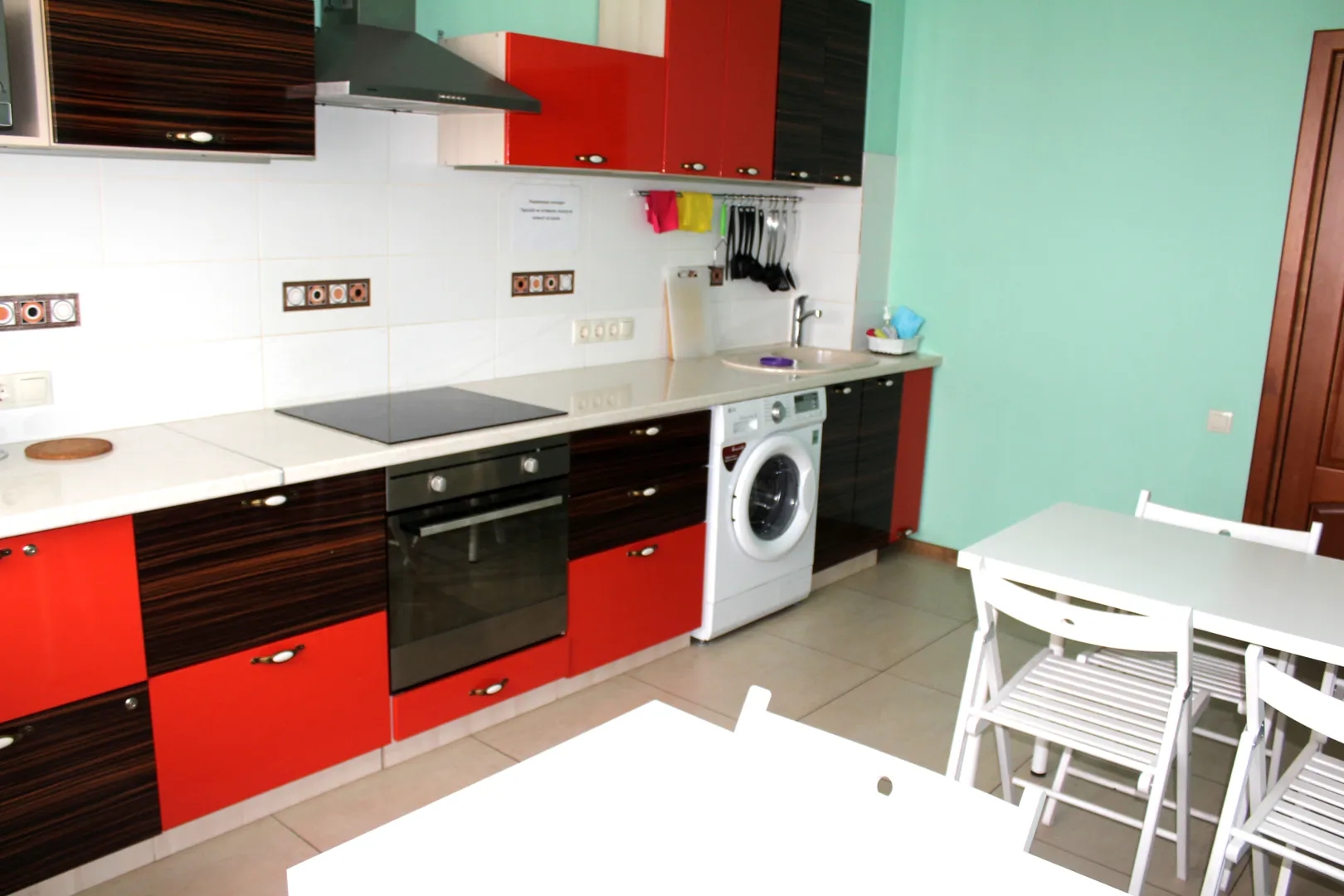 Комфортабельные однокомнатные апартаменты, выполненные в гармоничной цветовой гамме. Площадь — 35 кв.м. Набор мебели и оборудования: - двуспальная кровать - постельное белье и комплект полотенец - удобный раскладной диван - письменный стол и стулья - платяной шкаф и тумбы - вешалка для верхней одежды - чайник - посуда - холодильник - кондиционер - цифровое телевидение - бесплатный доступ в интернет (Wi-Fi) Просторный совмещенный санузел с душевой кабиной оснащён феном и средствами гигиены. Питание возможно через самостоятельное приготовление блюд на общей кухне или через доставку блюд из любого кафе и ресторана. Если вы хотите спать раздельно, сообщайте об этом за ранее! Данная услуга возможна при условии оплаты дополнительного комплекта постельного белья (+200 за всё время проживания). Курить в апартаментах запрещено! Штраф – 1 000 руб. С животными проживание запрещено!