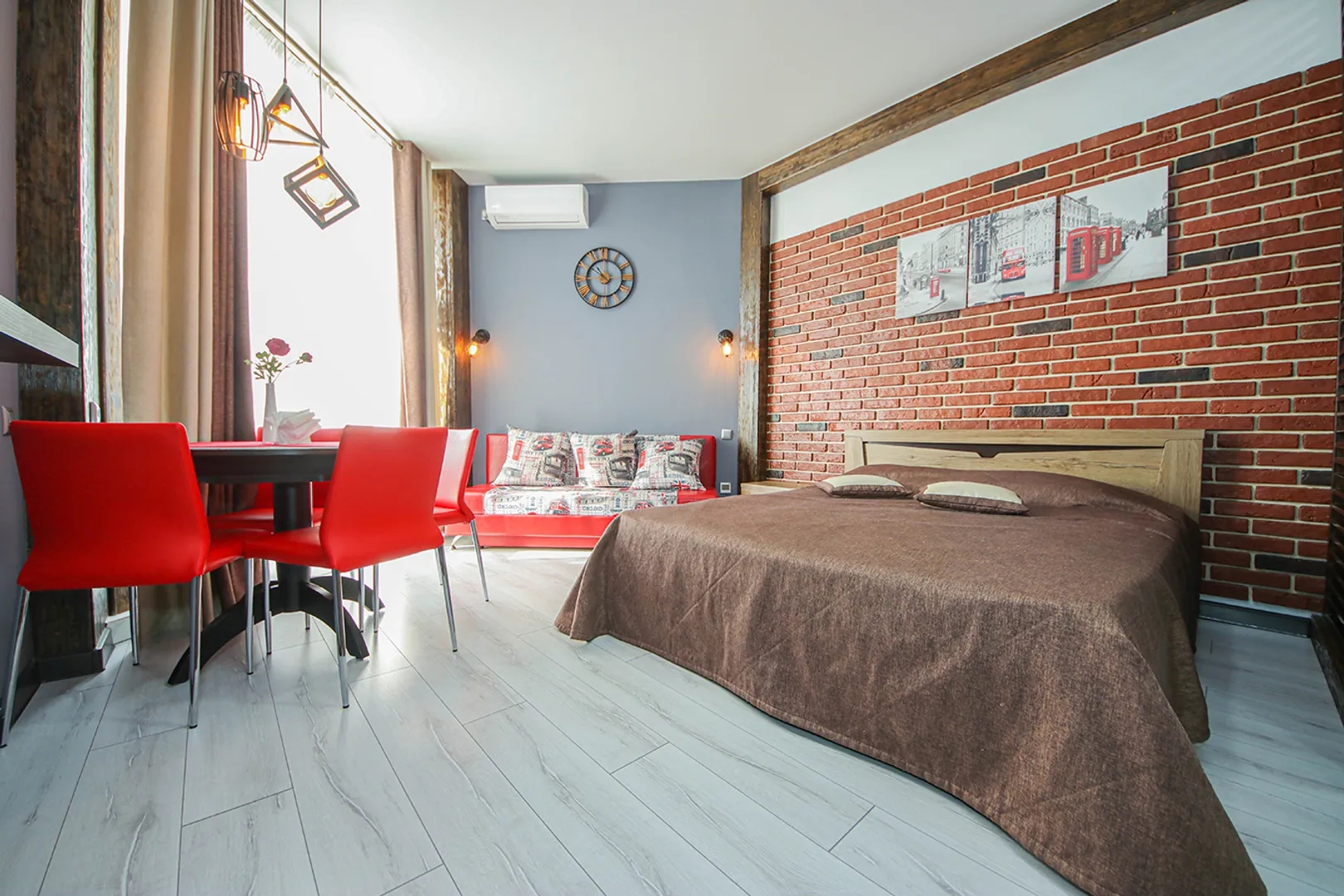 Апартаменты в стиле Loft на самом берегу Черного моря с потрясающим видом с балкона на Феодосийский залив. Двуспальная кровать, двуспальный диван, обеденный стол, стулья, кухонный уголок. По запросу детская кроватка. Рядом находится песчаный пляж "Жемчужный" остановка общественного транспорта, столовая, кафе, аптека, магазины.