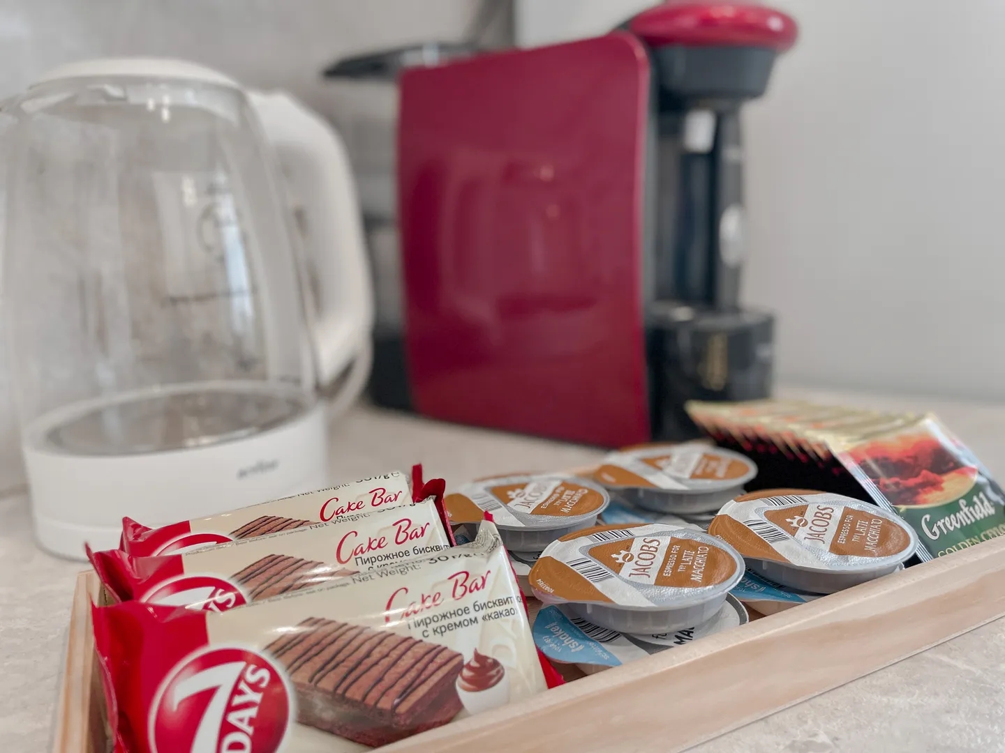 Сдаётся уютная студия с общей площадью 43.2м?. В квартире выполнен отличный евроремонт, который радует глаз. Квартира оснащена 4 спальными местами, одна двуспальная кровать и раскладной диван. Также установлен письменный стол для рабочих моментов. Лоджия оборудована для летнего отдыха. Подключен высокоскоростной WI-FI совместно с ТВ-приставкой, которая предоставляет доступ к 200 каналам, а также к таким онлайн-кинотеатрам как IVI, Premier, Amediateka и START. В квартире имеется всё для комфортного проживания: телевизор, стиральная машина, электрическая плита, чайник, микроволновая печь, кофемашина, фильтр для воды, посуда всех видов, постельные принадлежности, полотенца, одноразовые предметы личной гигиены, моющие средства, утюг и отпариватель, фен, водонагреватель, плечики и сушилка, женский набор и многое другое.