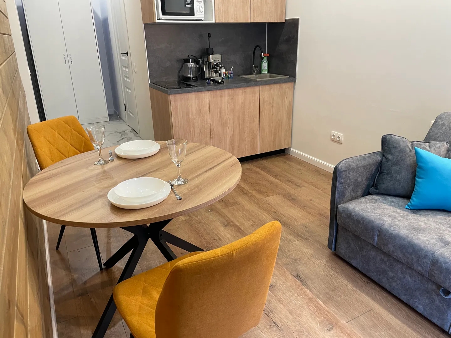Сдается уютная студия в очень хорошем районе города Иркутск. Аэропорт в 2.5 км Диагностический центр 3.8 км 130 квартал 4.8 км Все очень близко и доступно, не далеко автобусная остановка. Дом новый, ремонт свежий, мебель и вся техника новая. В Вашем распоряжении будет: Хороший диван-кровать Свежее постельное белье, изготовленное на заказ. Кухонный гарнитур Чайник Керамическая плита Микроволновая печь Автоматическая кофеварка Кофемолка Зерна кофе Скоростной Wi Fi Большой 50” SMART телевизор с ютуб Итальянская посуда Сковорода и кастрюля Tefal Раздельный свет Стена из имитации бруса, добавляющая уюта В санузле установлена стиральная машина Душевая стойка с эффектом тропического дождя Заселение в 14ч, выезд в 12. Но с каждым клиентом возможен индивидуальный подход (пишите) В квартире запрещено шуметь после 22ч, курить только на балконе (не мусорить), проводить мероприятия. Возможны скидки при длительном проживании