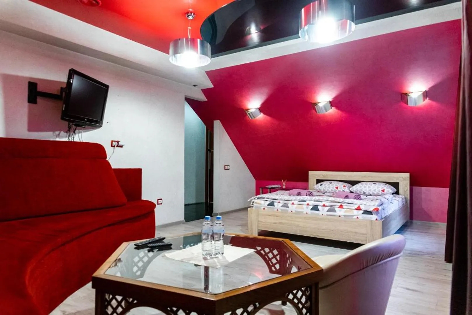 Уникальное название номера брилло - в переводе с испанского “свечение”. Номер встречает дизайном в стиле модерн 50-х годов прошлого века. Гибкие и текучие формы мебели и светильников. Цветовая гамма в номере очень необычная - белое, черное и пурпурное. Номер размещает 2х гостей, имеет 1 двуспальную кровать и большой угловой диван. Также есть столик, телевизор и вешалка для одежды. В данном номере свой санузел, сделанный по-европейски. Окна выходят во двор, зеленую зону и ручеек. Относится к 1-ой категории номеров - стандарт. В круглосуточном доступе общая комната отдыха, где можно перекусить, попить чай и просто посидеть за приятным разговором с друзьями. Комната оборудована холодильником, кулером с водой, чайником, микроволновой печью. Для всех гостей бесплатный чай, кофе и сахар. Для удобства и комфорта предоставляется одноразовая эко-посуда. Также имеется утюг, гладильная доска, фен. В отеле отлично работает wi-fi, система видеонаблюдения, есть система охраны и предупреждение пожаротушения. Brillo room - translated from spanish as "glow". The room welcomes with a design in the art nouveau style of the 1950s. Flexible and fluid forms of furniture and fixtures. The room has a very special color scheme of white, black and purple. The room accommodates 2 guests, has one double bed and a large corner sofa. There is also a table, tv and coat rack. This room has its own bathroom, made in european style. The windows overlook the courtyard, green area and the stream. 24-hour access to the common room, where you can eat, drink tea and just spend a nice time talking with friends. There is a refrigerator, water cooler, kettle and microwave oven in the room. Complimentary tea, coffee and sugar are provided for all guests. Only disposable eco dishware is provided for your convenience and comfort. There is also an iron, ironing board, hair dryer. Wi-fi, video monitoring system, security system and fire warning system work perfectly.