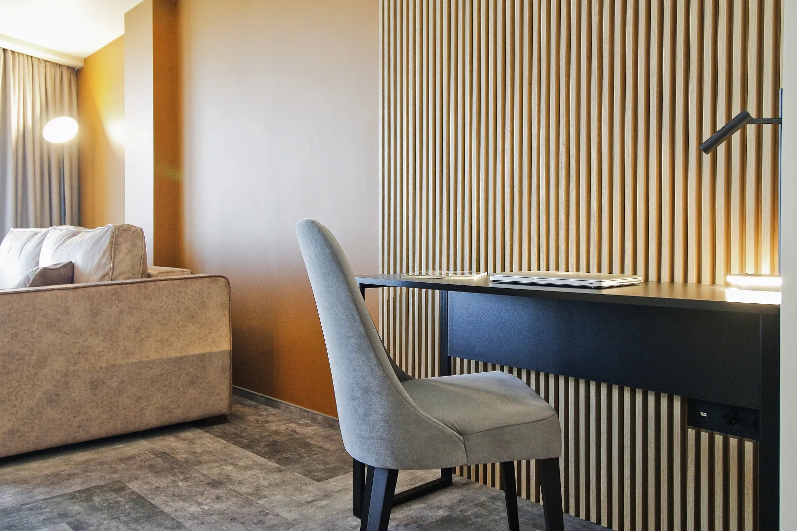 Однокомнатные апартаменты - студия с панорамным остеклением и подоконником для отдыха открывают прекрасный вид на Кафедральный собор и реку Преголь. Функциональное оснащение двуспальной кроватью с ортопедическим матрасом, мини-кухней с полным набором посуды и техники, вместительным шкафом, зоной для работы и отдыха, сделают комфортным пребывание 2 гостей. Отопление и теплые полы в сочетании с кондиционером помогут поддерживать желаемый микроклимат. В вашем распоряжении весь набор современной бытовой техники, посуда и кухонные принадлежности. Для семей с маленькими детьми возможно дополнительное оснащение детской кроваткой, а для подростков номер можно состыковать с соседней студией, так в вашем распоряжении будет два индивидуальных закрывающихся места для отдыха.