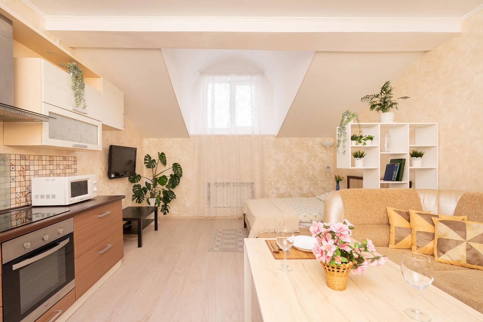 Вашему вниманию предлагается комфортная квартира посуточно «Централ Студио Хоум Казань | Homekazan», удачно расположенная в тихом и ухоженном историческом центре Казани в 5 минутах ходьбы до станции метро «Площадь Тукая» и пешеходной улицы Петербургская и улицы Баумана. В квартире-студии «Централ Студио Хоум Казань | Homekazan» площадью 40 квадратных метра проведён современный ремонт и интерьер жилья подобран в модном скандинавском стиле. Для наших гостей доступна двуспальная кровать 200x140 см с мягким и комфортным матрасом, диван-кровать шириной 160 см, ЖК телевизор с кабельным телевиденьем, высоко скоростной интернет с доступом WiFi, раздельный санузел с ванной и стиральной машиной, комплект полотенец, шампунь, гель для душа. Гостям доступна просторная кухня, оснащенная всем необходимым для реализации вашего гастрономического искусства: четырех конфорочная варочная панель, микроволновая печь, электрический чайник, комплект посуды и столовых приборов, бокалы для вина. Квартира посуточно «Централ Студио Хоум Казань | Homekazan» расположена на шестом этаже многоквартирного жилого дома. При этом лифт отсутствует, что необходимо учитывать маломобильным гостям в процессе своего выбора нашего варианта жилья. Квартира посуточно «Централ Студио Хоум Казань | Homekazan» выгодно характеризуется удачным местоположением и идеальной транспортной доступностью. Пешком до станции метрополитена «Площадь Тукая» 7 минут ходьбы. На метро от станции метро «Площадь Тукая» до Казанского Кремля (станция метро «Кремлевская») 2 минуты увлекательной езды, проезд стоит 30 рублей. Локация квартиры посуточно «Централ Студио Хоум Казань | Homekazan» идеальная для пешего туризма по Казани: вблизи стильная набережная озера Кабан (10 минут ходьбы), пешеходная улица Баумана (7 минут ходьбы), уникальные исторические архитектурные достопримечательности. До квартиры «Централ Студио Хоум Казань | Homekazan» на такси от аэропорта 20–25 минут езды, от вокзала — 10–15 минут езды. Квартира посуточно «Централ Студио Хоум Казань | Homekazan» — идеальный вариант для туристических и деловых поездок. Другие важные сведения: При заселении наличие паспорта обязательно. Имеются шторы блэкаут. При отсутствии у гостей положительных отзывов можем брать страховой залог за ключи в размере 1000 рублей / залог за пульт от парковки 1000 руб. Закрытый внутренний двор с современной и безопасной детской площадкой. Квартира находится на 6 мансардном этаже, подъем по лестнице (лифта нет). Это обязательно нужно учитывать маломобильным гражданам. Квартира без балкона, с мансардными высокими окнами. Заранее необходимо согласовать время заезда. Услуги по хранению багажа после выезда не оказываются. Подселение дополнительных гостей (включая детей), ранее неучтенных при бронировании, оплачивается из расчёта 1000 руб за 1 человека. "Тихий час" (когда гостям нельзя шуметь) с 22:00 по 07:00. Крайне приветствуется, когда гости соблюдают чистоту в квартире и перед выездом за собой моют посуду и выносят мусор. Некоторые детали интерьера и расцветка постельного белья могут отличаться от представленных на фотографиях объявления. Мы не занимаемся арендой парковочных мест. В квартире запрещено курение сигарет. Вокруг дома организована бесплатная уличная парковка. Собственных закрепленных гарантированных парковочных мест нет.