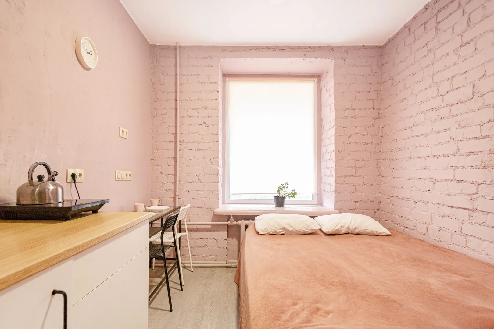 Уютная студия в микрорайоне Текстильщик города Королев. Апартаменты находятся в развитом микрорайоне, недалеко от дома находятся кинотеатр, кафе и рестораны, множество продуктовых магазинов, фитнес-центр, банки. Спортивная и детская площадка во дворе. Вокруг дома большое количество парковочных мест. До вокзала 5 мин пешком. На электричке до Москвы 31 мин. В апартаментах есть все необходимое для проживания. Уютная комната с двуспальной кроватью у окна, интерьер выполнен в спокойных тонах. Кухонная зона оборудована кухонным гарнитуром с необходимой техникой для приготовления и хранения продуктов и обеденным столиком для двоих, также есть необходимая посуда на двух персон. В ванной комнате установлена новая сантехника с полноценной ванной и раковиной.