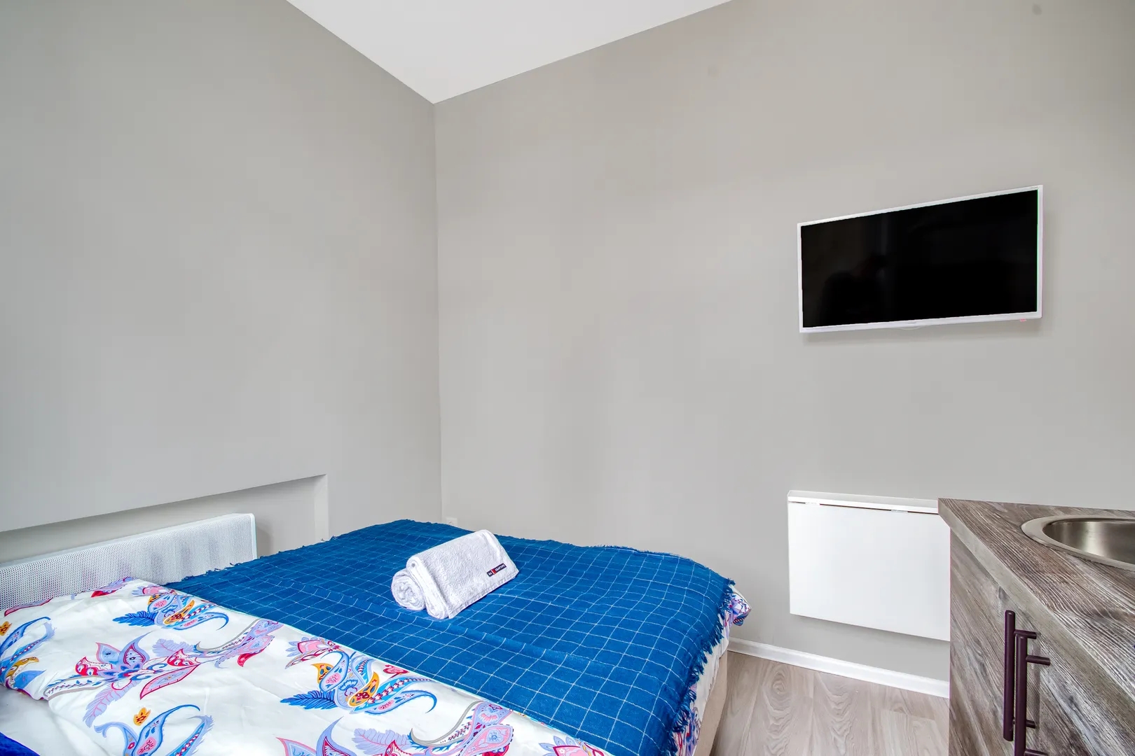 От метро Водный стадион 2 минуты спокойным шагом. Компактная квартира-студия с уютным интерьером в теплых тонах. Даже в холодный зимний вечер, когда метель завывает за окном, эта студия будет согревать гостей одним своим видом: нежно-персиковые стены, кофейные шторы, обеденный столик цвета светлого ясеня, в тон ему двустворчатый шкаф с дверками цвета топленого молока – абсолютно все навевает мысли об уютных романтических вечерах! Для удобства гостей на стене возле кровати повешен большой плоский ЖК телевизор с полным набором кабельных каналов. Над кроватью есть две индивидуальные полочки и над каждой из них – маленький персональный светильник. У противоположной стены компактно разместилась кухня со всей необходимой бытовой техникой: здесь есть большой двухкамерный холодильник, кухня под единой столешницей, включающая в себя варочную панель, раковину, вытяжку и шкафы. Чайник и микроволновка, дополняющие эту композицию, не позволят постояльцам остаться без завтрака. Обеденная зона со столом и двумя стульями удобно расположилась под телевизором, возле кровати. В квартире есть весь минимально необходимый для жизни набор посуды. Ванная комната не уступает по уюту и красоте спальне ни насколько. Сочетание белого и зеленого в отделке этой комнаты не может не радовать. Так приятно выйти из душа и встать ножками на теплый зеленый коврик! А занавеска цвета морской волны вызывает желание тихонько напевать что-то «курортное» во время вечернего душа. Вемь ремонт и сантехника абсолютно новые и исправные. Завершает образ этой приятной студии гостеприимная прихожая в которой есть компактная вешалка для верхней одежды и большое настенное зеркало. Квартира расположена на улице Адмирала Макарова, в шаговой доступности от метро. До метро водный стадион можно прогуляться за две минуты или добежать меньше, чем за одну. Рядом с метро есть большой торговый центр «Водный», недалеко от дома можно найти большой продуктовый супермаркет «Магнолия», в самом доме есть салон красоты и продуктовый магазин. Район снабжен всеми необходимыми социально значимыми объектами. Можно заезжать и оставаться.