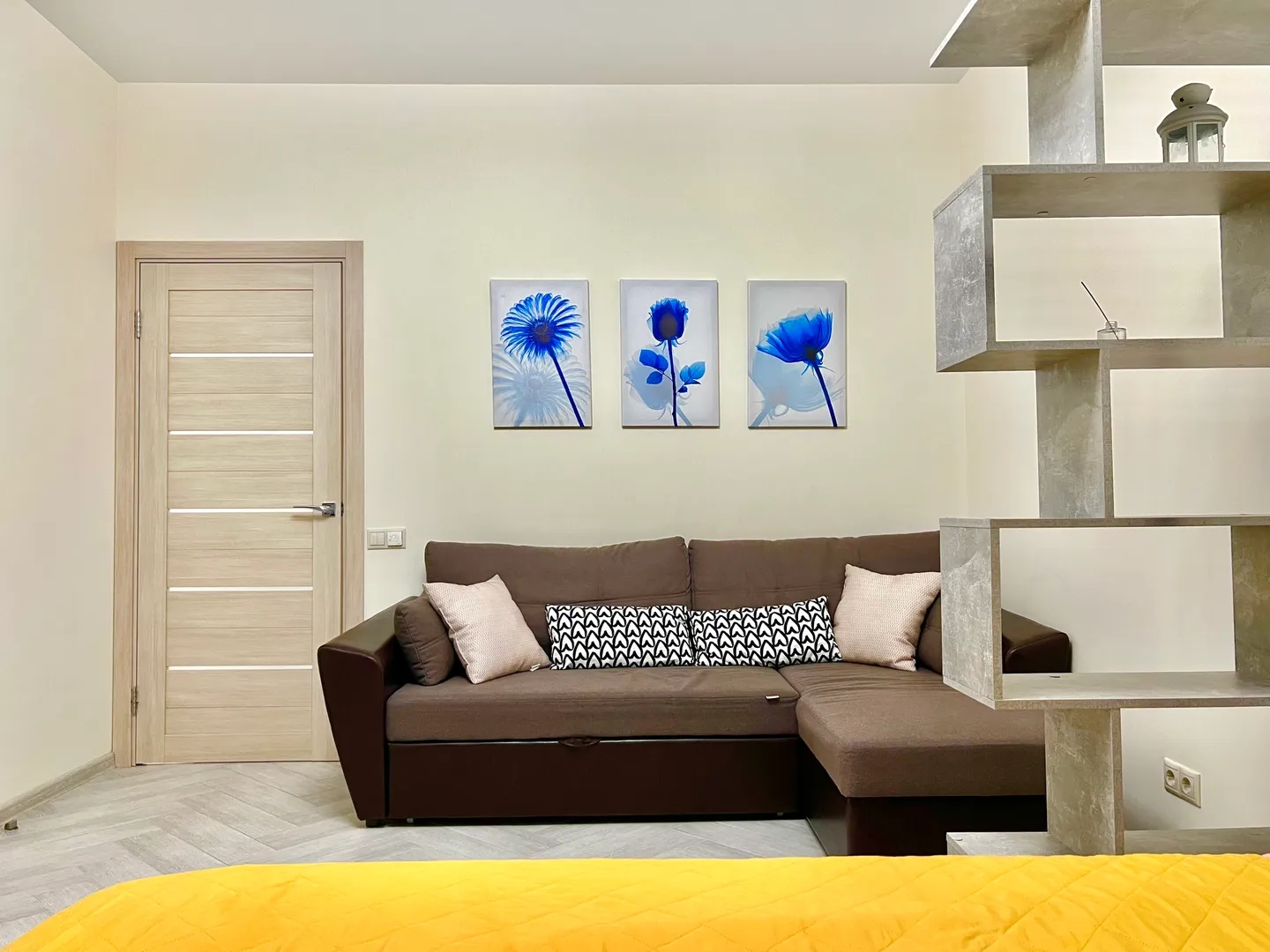 Светлый цвет стен идеально подойдёт для отдыха от работы, если вы находитесь в командировке или хотите отвлечься от рутины. Нет шумных соседей, никто не будет отвлекать и надоедать.