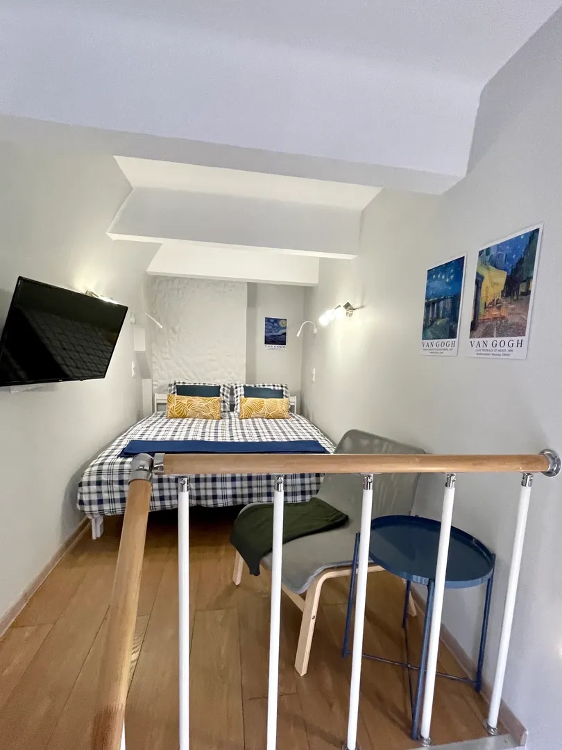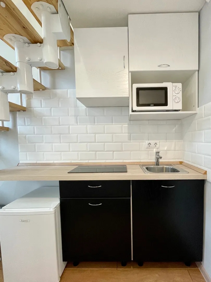 В студии – полноценный второй ярус с кроватью, мебелью и телевизором. Вы сможете расположиться в уютном кресле с чашкой кофе или чая. А вечером полюбоваться сногсшибательными видами из окна.