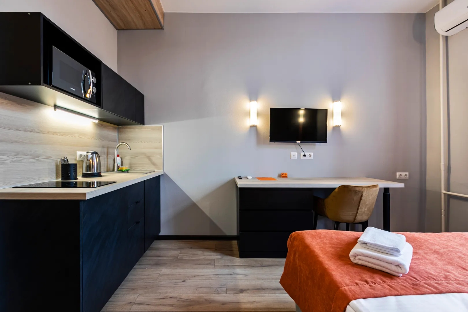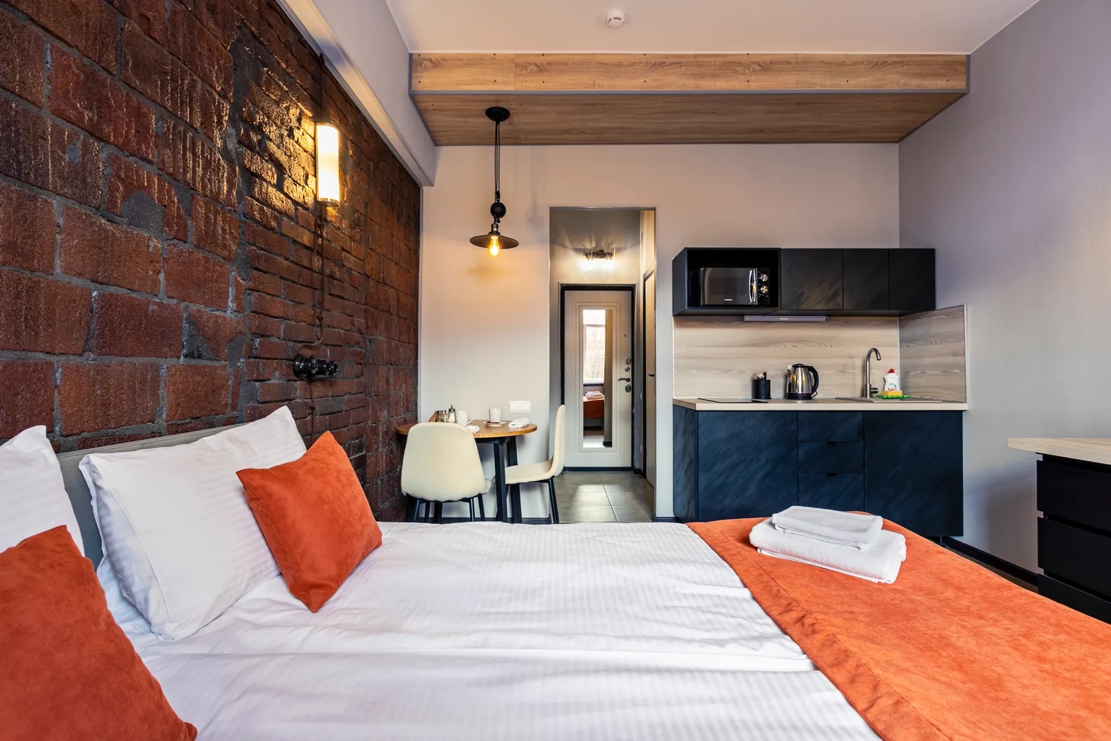 Шикарные апартаменты всего в 1-й минуте ходьбы от метро «Окружная»! Мы расположены в уютном и зелёном районе Марфино. В шаговой доступности имеется вся необходимая инфраструктура - магазины и аптеки, кафе и рестораны, салоны красоты. Удобный выезд на Алтуфьевское и Дмитровское шоссе. Небольшие, но уютные студии, с дизайнерским ремонтом, где есть всё необходимое для комфортного проживания: бесплатный Wi-Fi, Телевизор, плита, холодильник, микроволновка, фен, всё для сервировки стола. Уборка и дезинфекция проводятся после каждого заезда. Комфортное проживание гарантировано. Идеальный вариант для командированных сотрудников и тех, кто просто хочет отдохнуть в непринужденной обстановке. Сторонники активного образа жизни и любители природы, остановившись у нас, будут рады посетить Ботанический сад с его оранжереями, а также Останкинский парк с его знаменитым Шереметьевским дворцом, прудом и Храмом, которые расположены в шаговой доступности от наших апартаментов. Это уникальные зелёные зоны практически в центре Москвы, где можно отдохнуть от повседневной суеты во время вечерней прогулки, полюбоваться природой или заниматься утренними пробежками.