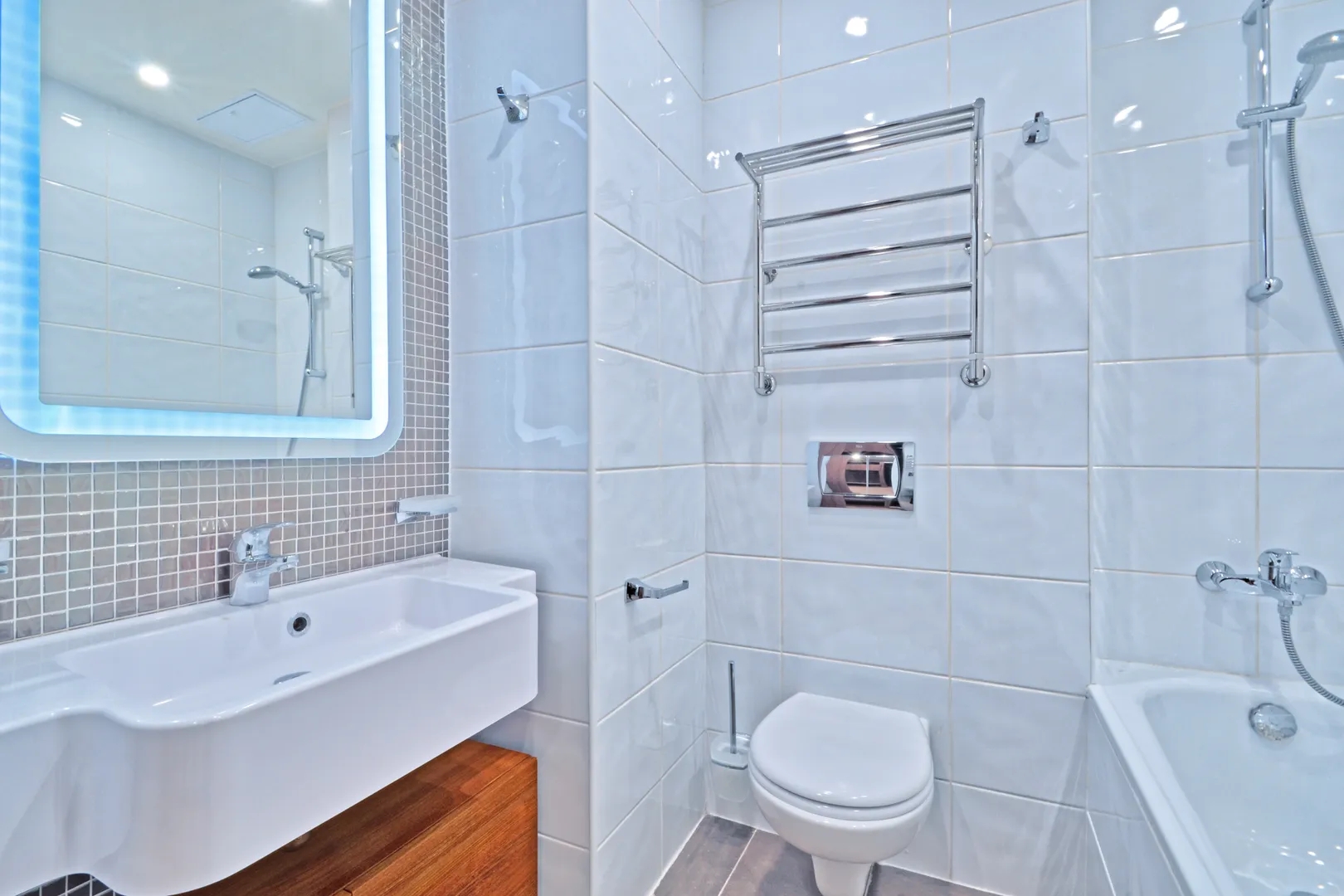 Стильный ремонт апартаментов дополнен хорошо подобранным домашним текстилем и предметами интерьера.