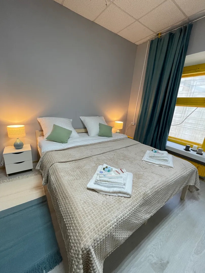 Просторный номер с удобствами. Имеется телевизор, интернет, чайник, холодильник, посуда и принадлежности.