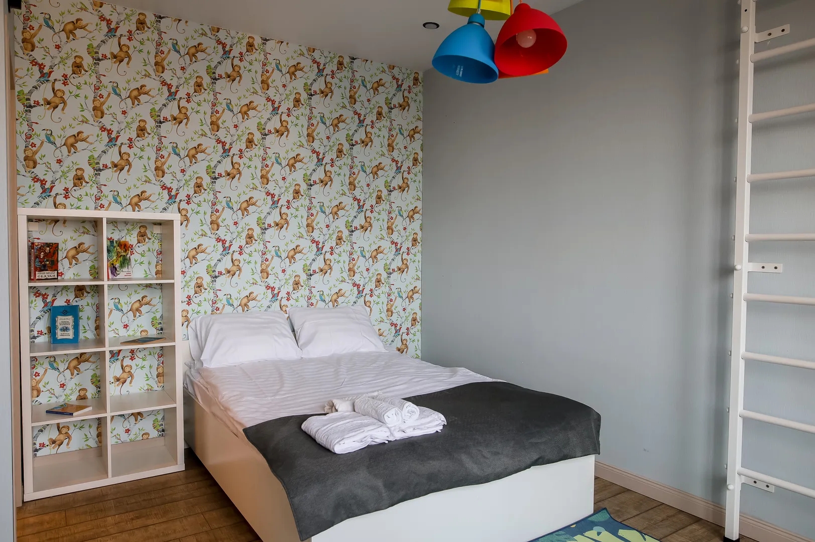 Famyli Dream просторная современная студия с двумя изолированными спальнями и большой гостиной с мягким диваном и телевизором с функцией смарт тв. Две спальни выполнены в разных цветовых решениях для максимального выбора гостей. Мастер спальня сочетает в себе светлые и бархатные тона прованса, в спальне имеется гардеробный шкаф, рабочий стол с освещением, тумбочка. Вторая спальня выполнена в светлых серых тонах с яркой цветовой стеной, имеет удобную просторную кровать, рабочий стол с освещением, а так же стеллажи, на которых удобно разложить книги или игрушки и спорт комплекс, который будет интересен детям любого возраста. Кухня-гостинная укомплектованы акцентными вещами, которые подарят не только хорошее настроение, но и запоминающиеся фотографии на память. Кухня укомплектована встроенной современной бытовой техникой, посудой, а так же кофе и чаем. Ванная комната с просторной ванной и удобной встроенной раковиной. Отдельный туалет будет удобен при размещение с детьми. В коридоре есть встроенный гардероб. Кровать: 2-е двухспальных кровати, диван Вместимость: 5 взрослых Размер апартов: 70 кв м Особенности: апартамент с 2-мя отдельными спальнями и залом, посудомоечная машина, духовой шкаф, ванная, холодильник, стиральная машина, телевизор с wifi, большой шкаф. Этаж: 12