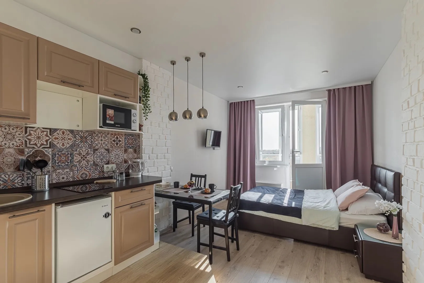 Солнечная и уютная квартира-студия «Scandinavia» расположенная на высоком этаже современного жилого комплекса, подарит посетителям тепло и уют настоящего европейского гостеприимства. В студии имеется просторная лоджия с панорамными окнами и удобными креслами-мешками, чтобы любоваться видами на город с высоты птичьего полёта было ещё комфортнее. Большая двуспальная кровать с матрасом снятия усталости. Итальянская сантехника и новая бытовая техника. Есть всё необходимое для приготовления пищи. Новая высотка в современном жилом комплексе. К вашим удобствам: охраняемая территория, большая парковочная зона под окнами, скоростной лифт, удобная локация, хорошая транспортная развязка. Парк, торговые центры, кафы и рестораны рядом с домом. Правила действующие при заезде: В квартире категорически запрещены шумные вечеринки. Залог 1500? дополнительно взимается при заезде и возвращается при выезде при условии сохранности имущества. При заезде необходимо иметь документы- будет составлен договор.