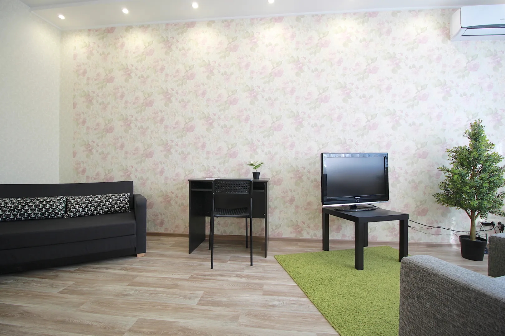 «Альфа Апартаменты» — оригинальные гостиничные квартиры в лучших местах города с полной обстановкой, начинкой и идеями молодых дизайнеров, где чувствуешь себя как дома, вдали от дома. Заселение прямо на квартире, свежее постельное белье, полотенца, wifi, жк тв, фен, утюг, микроволновка, водонагреватель, кондиционер, вся посуда, комфортный матрас кровати, кухня, гостиная и чистота - наши стандарты. Мы работаем официально, без комиссий и залогов с отчетными документами. Для минимальной цены и гарантии четкого заезда - бронируйте на нашем сайте Альфа Апартаменты (см. здесь профиль компании или гуглите :) Здесь: новая 2-комнатная квартира в уютным интерьере и мебелью в Новом доме. Балкон имеет панорамные виды на город. Возможность размещения дополнительных гостей в соседней квартире. 6 спальных мест (2-спальная кровать, 2-спальный диван, 2-спальный диван).