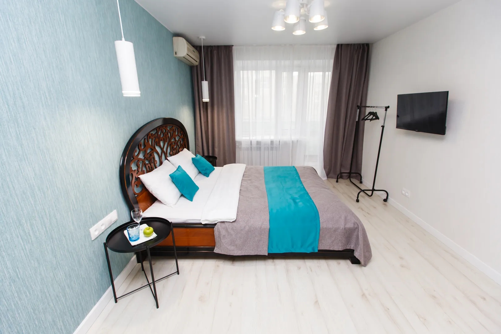 Отдых в самом центре города. Для Вашего удобства бесплатный Wi-Fi, кондиционер в летний период, телевизор в комнате с поворотным механизмом, комфортно смотреть на диване и на кровати, отдыхая перед сном. Основное спальное место - размер кровати 1,6х2м, диван 1,4х2м. Кухня оборудована холодильником, чайником, микроволновой печью, столовыми приборами и посудой, для самостоятельного приготовления еды, а также присутствует доп. телевизор. Ванная комната оборудована стиральной машиной, порошок и кондиционер для стирки белья в наличии. Дополнительно, для Вашего удобства фен, утюг и гладильная доска. Всегда свежее постельное белье и комплект полотенец (3 шт. на одного гостя).