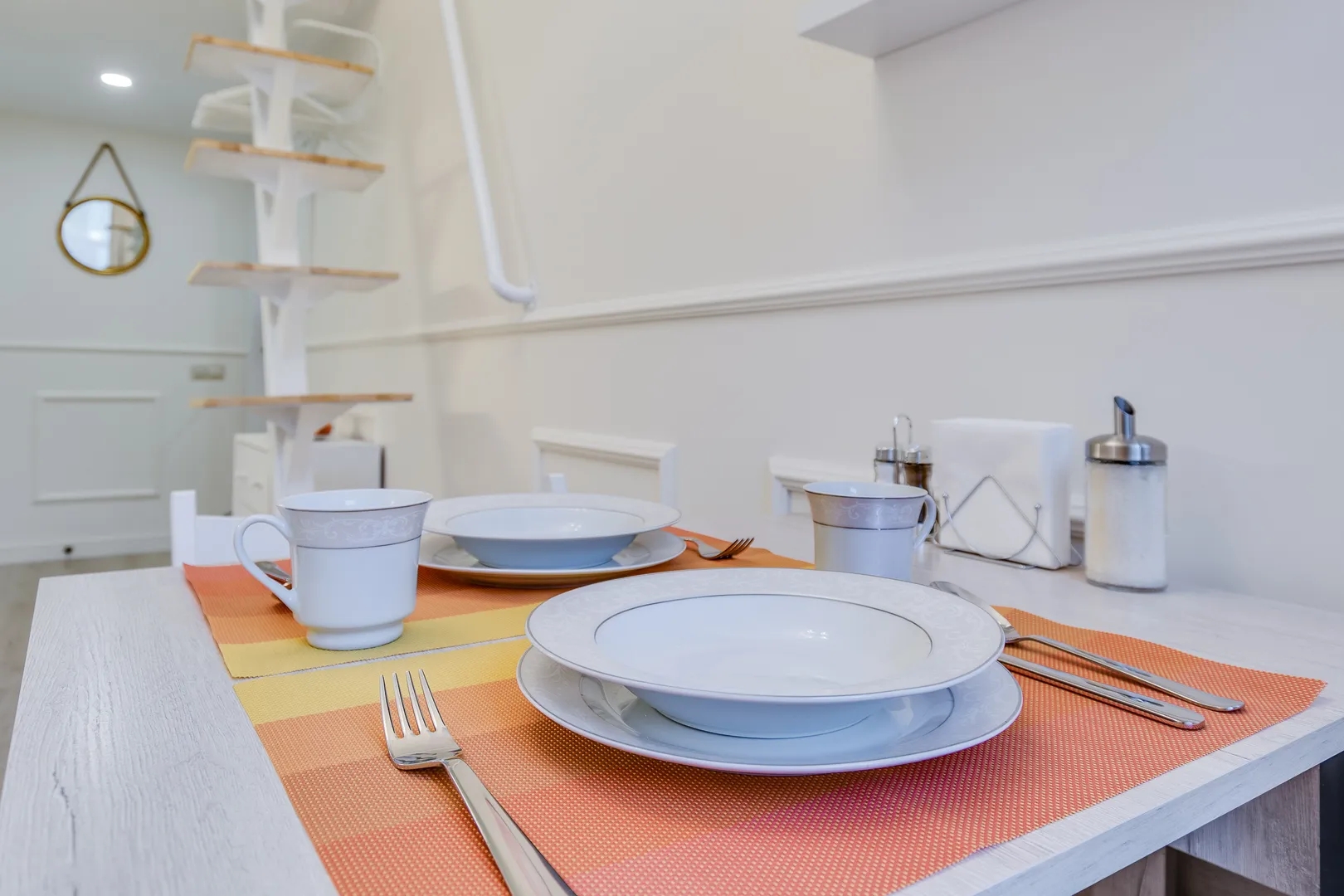Двухуровневые студии с мини-кухней снабжена индукционной плиткой и специальной посудой для быстрого приготовления завтрака и приёма пищи. В студии располагается санузел с душем. Гостям предоставляется wi-fi, фен, свежее постельное бельё, комплект полотенец по количеству гостей, моющие средства, одноразовые салфетки, бесплатные туалетно-косметические принадлежности, чай, кофе, сахар, соль. В каждой студии есть бесплатные средства для чистки одежды и обуви, дополнительный удлинитель для электрических приборов, зонт и сушилка для обуви. На общей территории расположена гладильная доска, стиральная машина, кофеварка, кулер, микроволновая печь. По вопросам парковки можно уточнить у администратора.