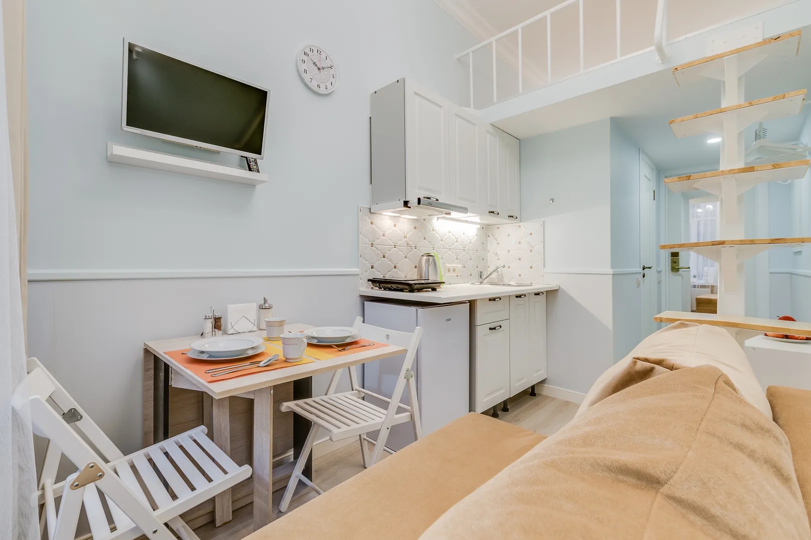 Апартаменты "Элегант" расположен в центре Санкт-Петербурга рядом с Московским проспектом. Апартамент выполнен в стиле арт-нуво с изящными дизайном в стиле начала 20ого века. Отель наполнен воздухом и светом. Двухуровневые студии с мини-кухней снабжена индукционной плиткой и специальной посудой для быстрого приготовления завтрака и приёма пищи. В студии располагается санузел с душем. Гостям предоставляется wi-fi, фен, свежее постельное бельё, комплект полотенец по количеству гостей, моющие средства, одноразовые салфетки, бесплатные туалетно-косметические принадлежности, чай, кофе, сахар, соль. В каждой студии есть бесплатные средства для чистки одежды и обуви, дополнительный удлинитель для электрических приборов, зонт и сушилка для обуви. На общей территории расположена гладильная доска, стиральная машина, кофеварка, кулер, микроволновая печь. По вопросам парковки можно уточнить у администратора. Апартаменты имеют удобное расположение: 5 мин до метро Технологический институт, 6 км до Московского вокзала. Расстояние до аэропорта Пулково составляет 18 км. Рядом музеи, театры - прелести Культурной столицы! Дворцовая площадь и музей Эрмитаж — в 3,8 км. 5 мин до метро Технологический институт, 6 км до Московского вокзала. Расстояние до аэропорта Пулково составляет 18 км. Рядом музеи, театры - прелести Культурной столицы! Дворцовая площадь и музей Эрмитаж — в 3,8 км.