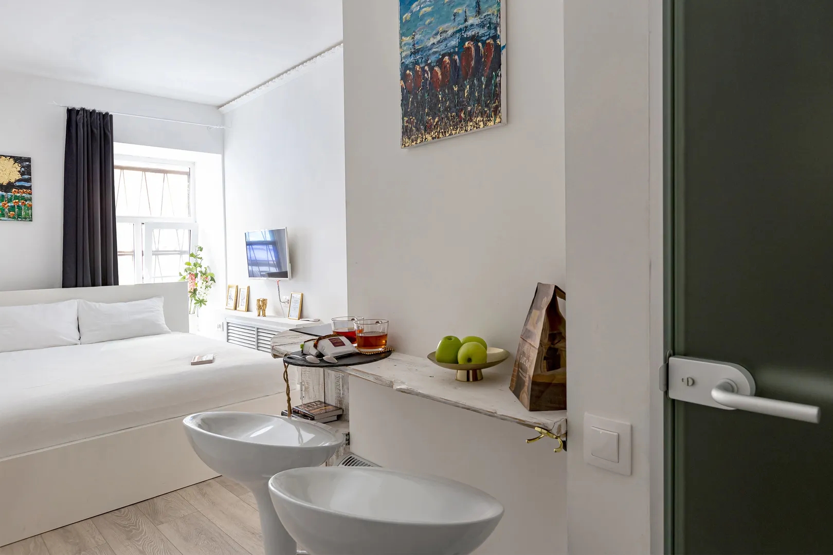 Очень маленькая студия в центре Санкт-Петербурга. На 1 этаже в тихом, безопасном Питерском колодце. Подходит для непродолжительного отдыха одного, максимум 2х людей, с целью посмотреть город! Рядом множество кафе, ресторанов и баров. 1 минута до Невского проспекта. Заезд возможен и поздним вечером без дополнительных затрат.