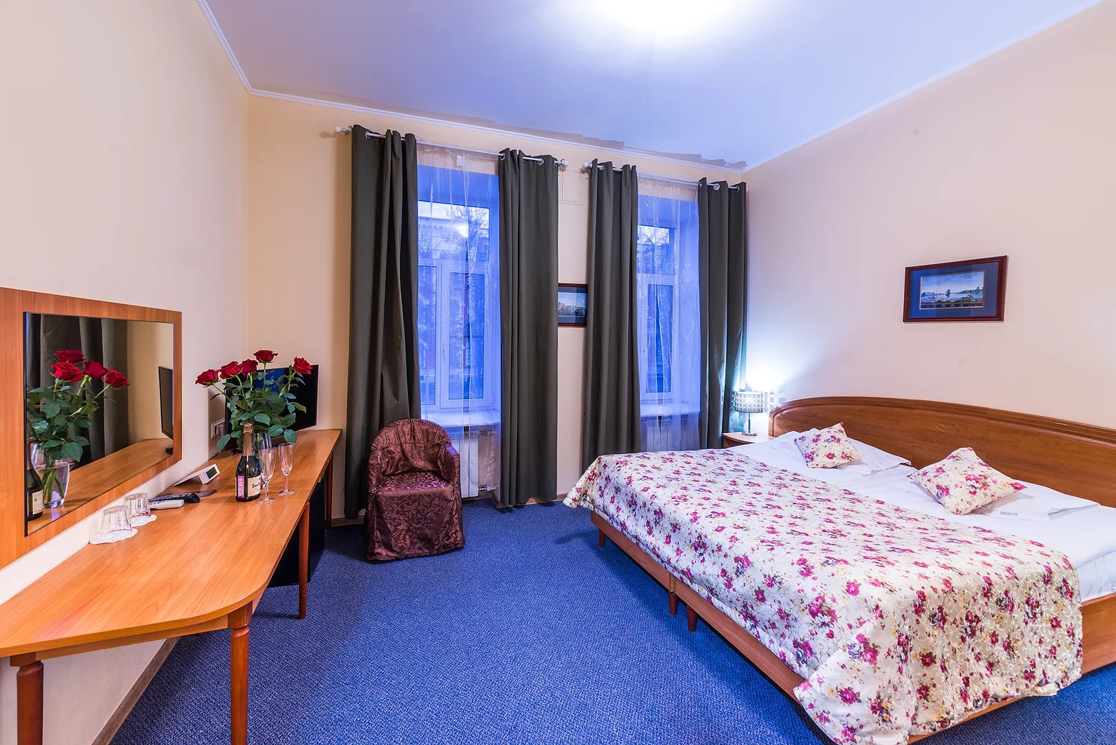 Номер стандарт – это уютный однокомнатный номер эконом-класса. В номере стандарт предусмотрены одна двуспальная кровать (180x200) или 2 односпальных(90x200), телефон, телевизор, интернет wi-fi, мини-бар, фен, кондиционер, письменный стол, шкаф и санузел с душевой кабиной. В собственной ванной комнате номера имеются туалетно-косметические принадлежности, халат и фен.