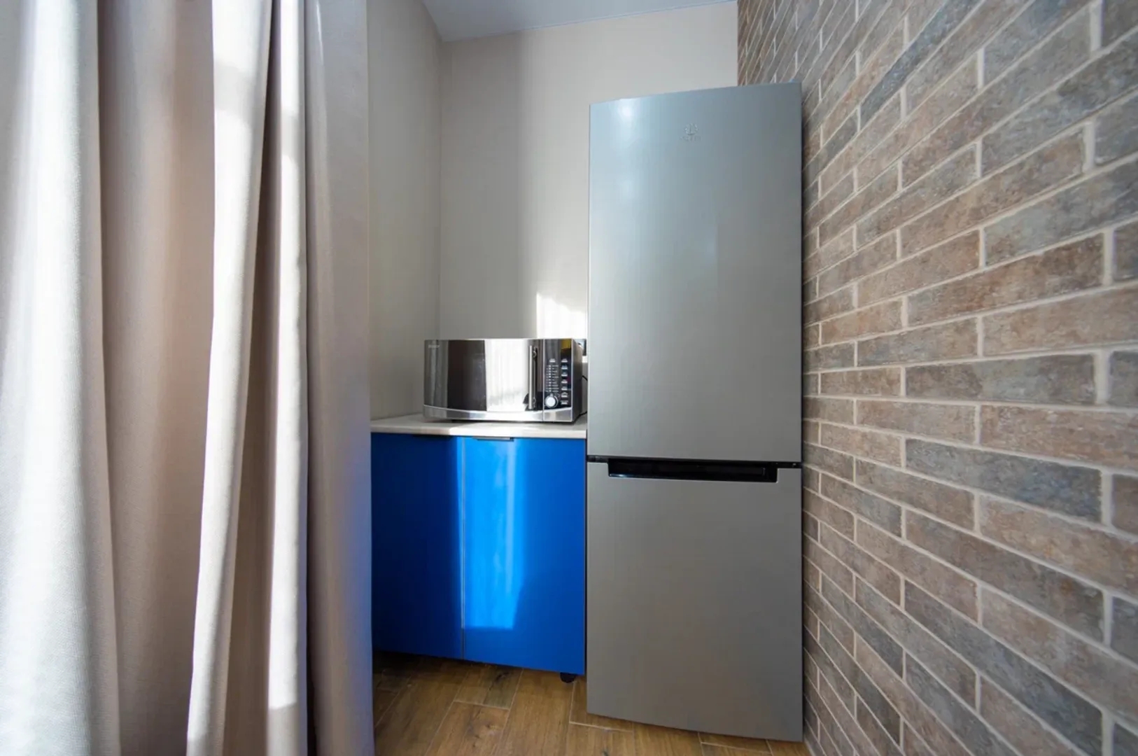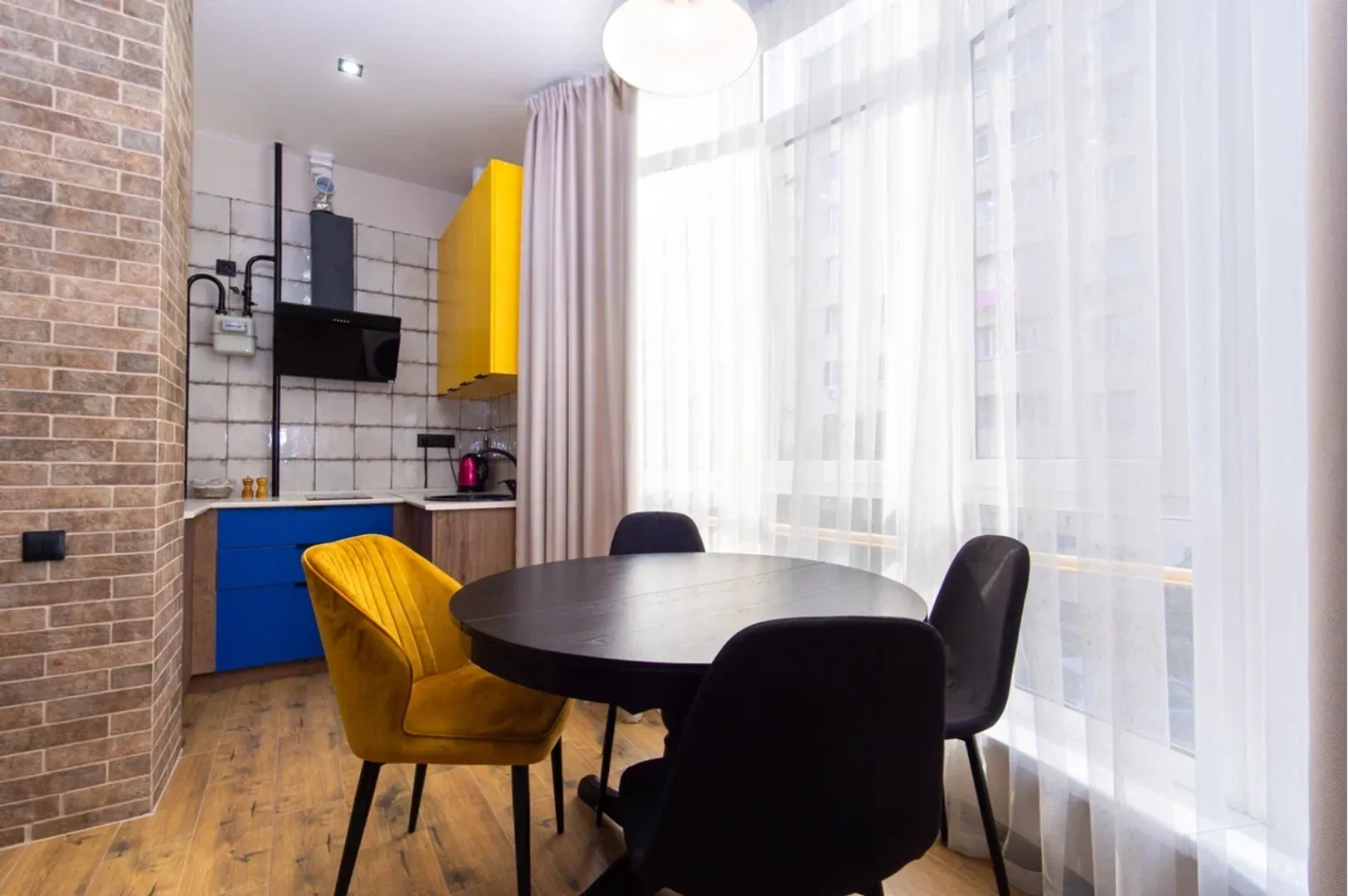 Продуманный дизайн создаёт приятную атмосферу в этих прекрасных апартаментах. Которые рассчитаны на комфортное проживание четырёх человек. Все что вам потребуется для комфортного проживания вы найдёте у нас дома.