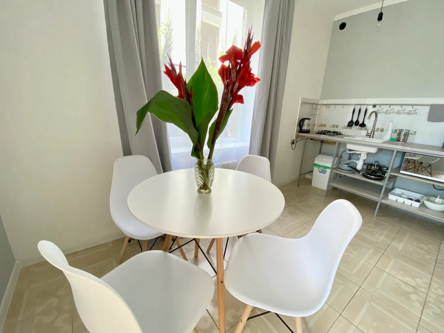 Просторные апартаменты в скандинавском минималистичном стиле для спокойного отдыха. Предусмотрено всё для удобства гостей. Большая кухня с обеденной зоной: есть вся посуда для приготовления пищи. Перед входом своя зона отдыха с садовой мебелью, наши гости отмечают будто жили в отдельном доме, а не в обычных апартаментах. Welcome набор, тапочки, полотенца, постельное белье из страйп сатина, косметические принадлежности, зонтик на случай дождливой погоды. В стоимость проживания входит уборка раз в три дня со сменой постельного белья и полотенец. Бассейн работает круглогодично, в марте температура воды в бассейне 17 градусов. Размещение с животными разрешено 500 руб./сутки. Апартамент рассчитан на 2 основных места, дополнительное размещение свыше 2х человек оплачивается отдельном.