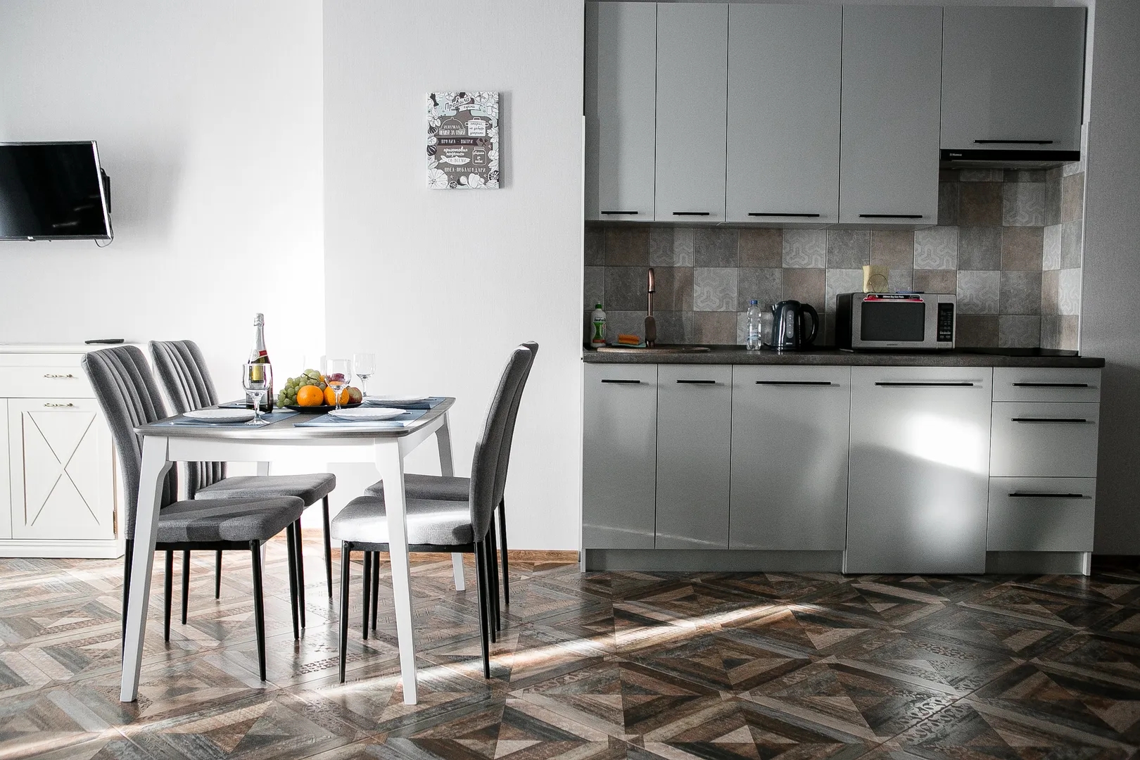 Просторные, светлые дизайнерские апартаменты со всеми современными удобствами в самом центре города Светлогорск. Наши апартаменты оборудованы по последнему слову техники, включая телевизоры со Smart TV, Wi-Fi и др. Апартаменты расположены на втором этаже. В шаговой доступности расположен развлекательный комплекс "Янтарь Холл" (где проходит КВН), включающий в себя концертный зал, кинотеатр, музей мирового океана, а так же игровая детская площадка с батутами и горками для детей. К услугам гостей полноценная кухня, кондиционер, wi-fi, телевизор, стиральная машина, двуспальная кровать и раскладывающийся двуспальный диван-кровать, круглосуточная охрана и уникальная возможность наблюдать за Балтийским морем!